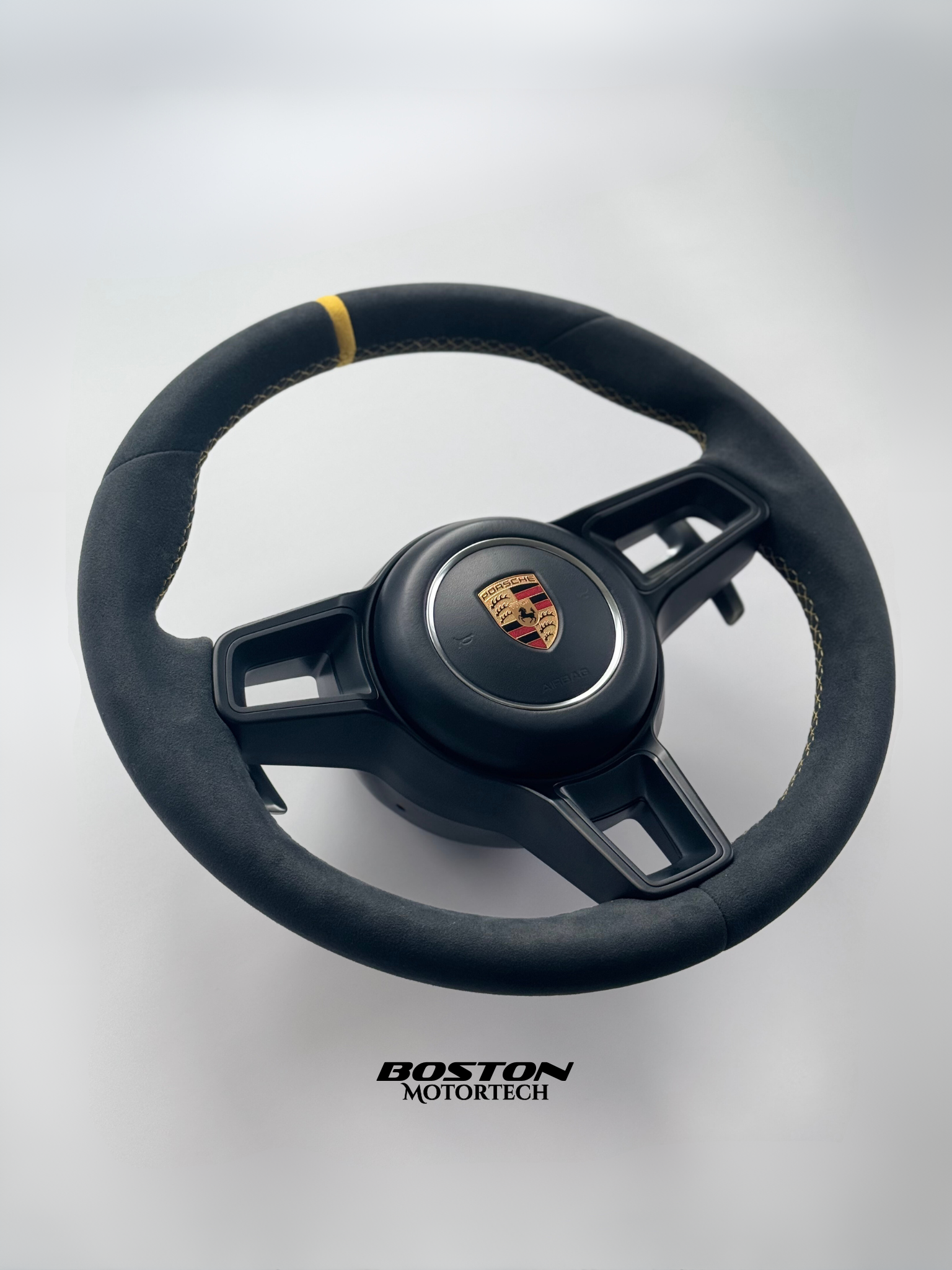 Presenting the Porsche GT4RS steering wheel, reimagined by Boston Motortech. We sourced Italian Alcantara to create a gentle grab and premium-finish to your driving experience. Combined with sleek design and high-end material, it will ensure your track performance with its grippy texture.
